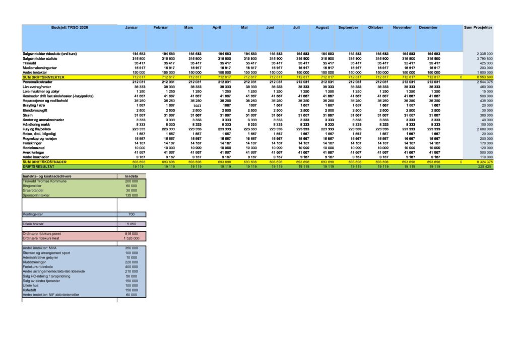 TRSO budsjett 2020